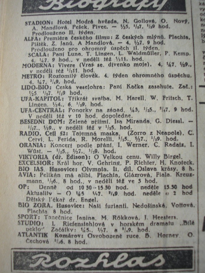 | Cinema | Moravské slovo | 1941-09-19 | 221 | 100 |