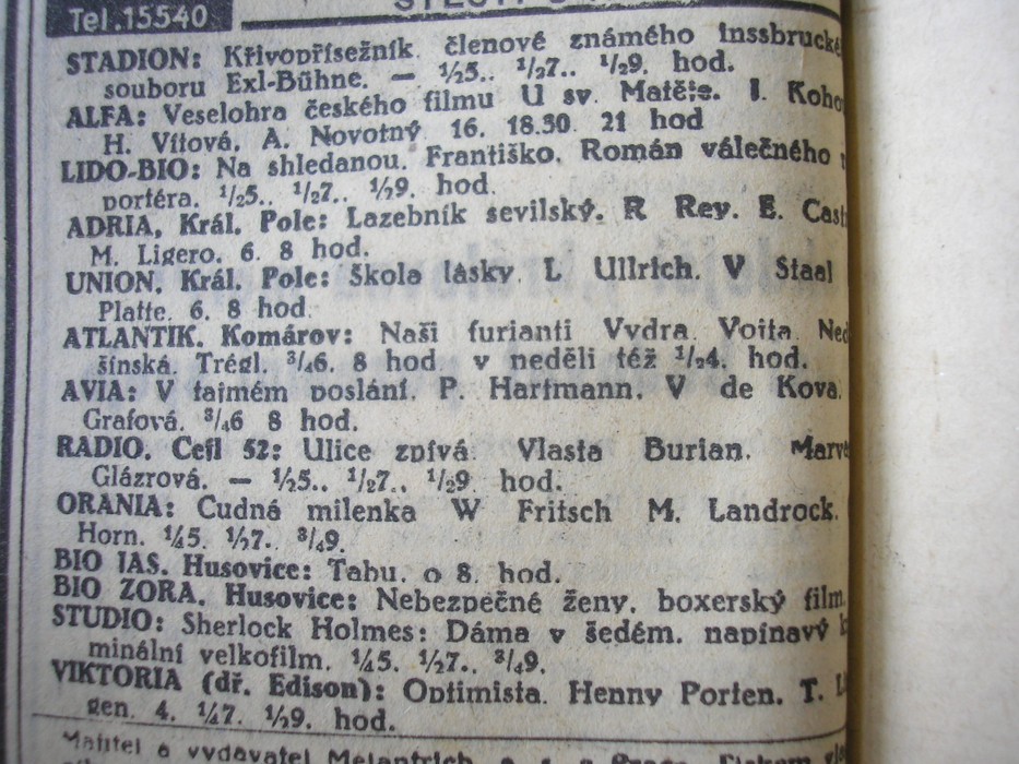 | Cinema | Moravské slovo | 1942-05-21 | 119 | 100 |