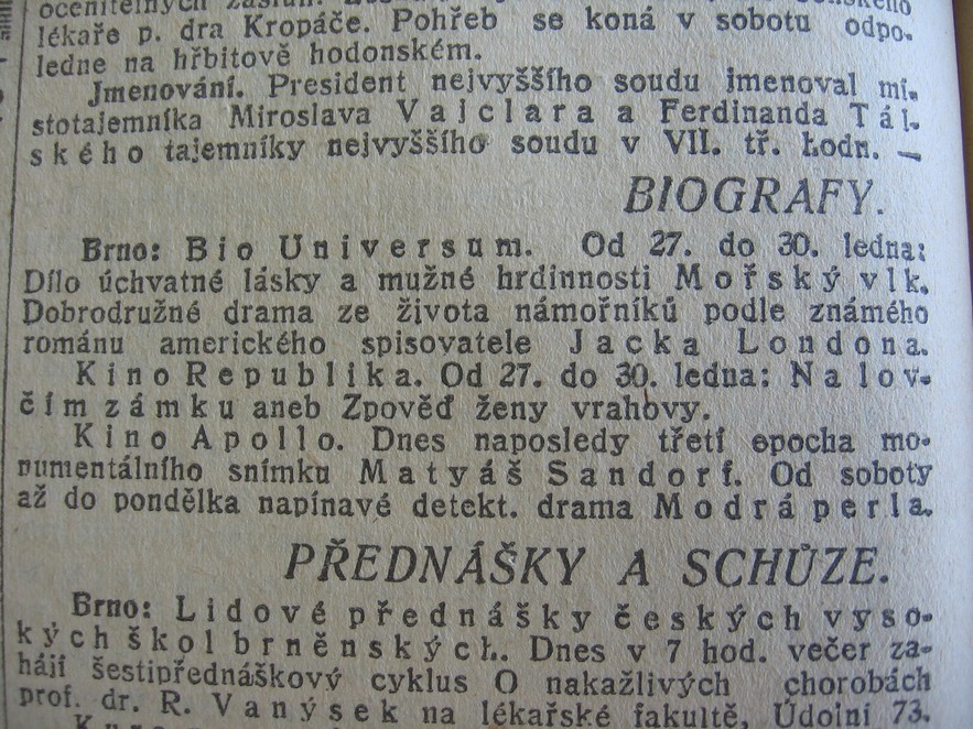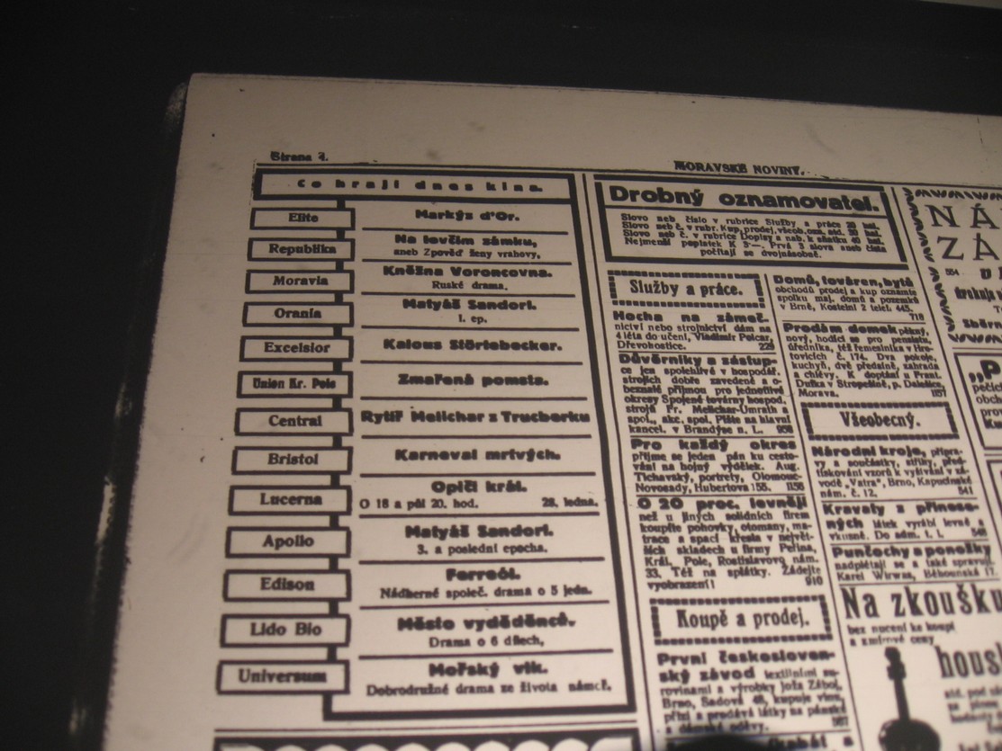 | Programme publishing date | 1922-01-28: Moravské noviny | 1922-01-28 | 22 | 100 |