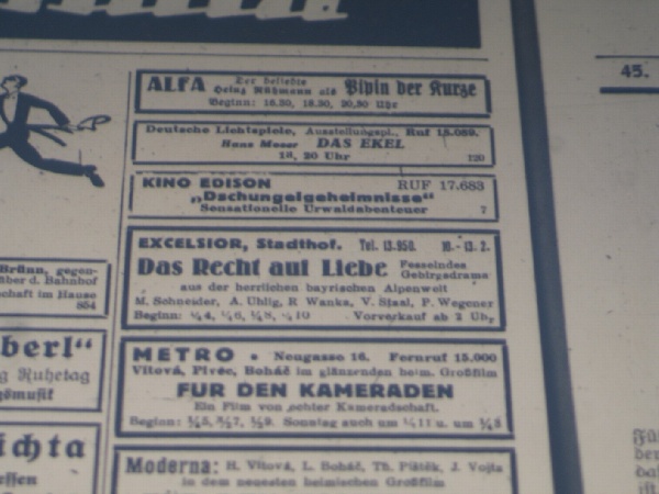 | Number of screenings | Tagesbote aus Mähren und Schlesien | 1941-02-13 | 44 | 100 |