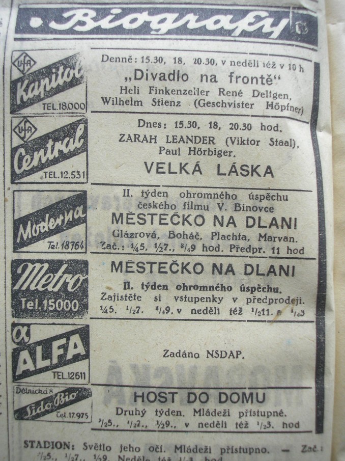 | Cinema | Moravské slovo | 1942-10-23 | 252 | 100 |