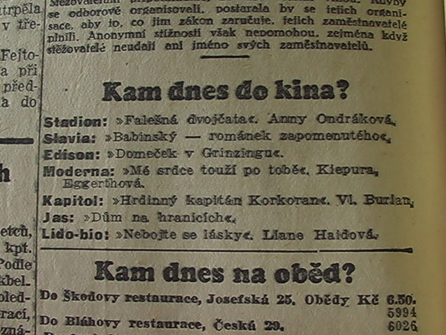 | Cinema | Moravské slovo | 1934-09-18 | 172 | 100 |