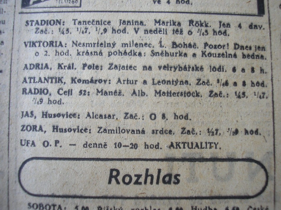 | Cinema | Moravské slovo | 1943-04-10 | 84 | 100 |