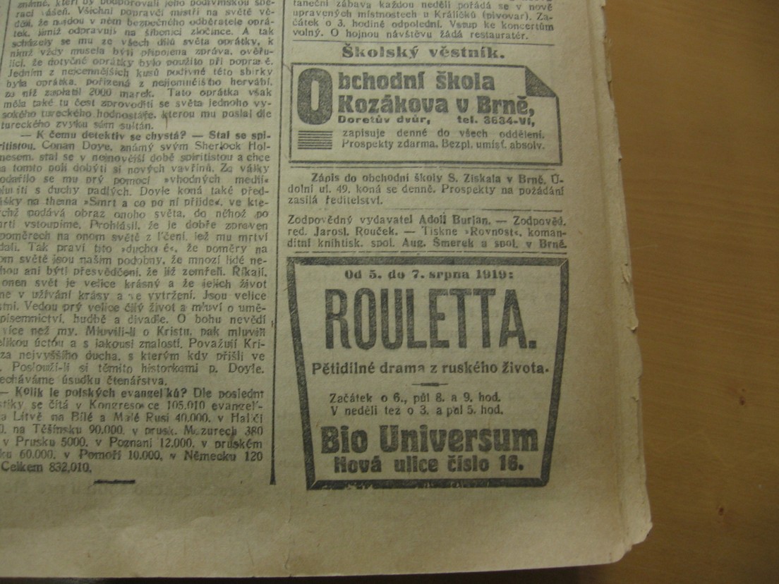 | Cinema | Rovnost | 1919-08-05 | 214 | 100 |